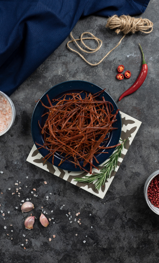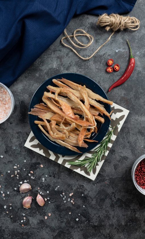 Põhjaputassuu (micromesistius poutassou) 85.5%, keedusool, suhkur, chili pulber, niiskusesäilitaja sorbitool (E420), maitsetugevdaja (E621).